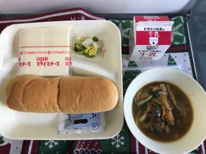 カレーうどん、はくさいのおひたし、スライスチーズです。