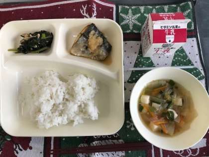 さばのみぞれかけ、すまし汁、こまつなの煮びたしです。
