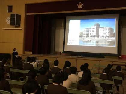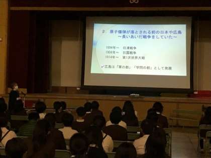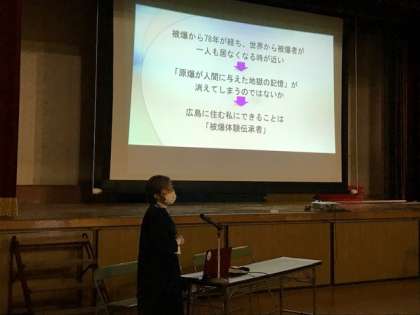 広島平和記念資料館から被爆体験伝承者の方に来ていただいて、平和について考えました。