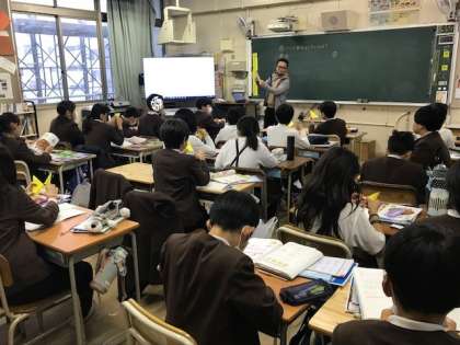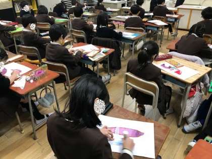3年生の外国語と5年生の算数と2年生の図工の学習のようすです。