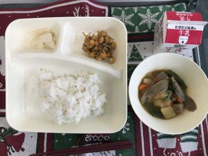 鶏肉と野菜の煮もの、じゃこ豆、かぶのゆず風味です。