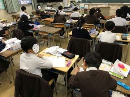 4年生の総合と3年生の算数と5年生の習字の学習です。