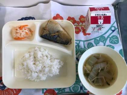 今日のさばのみそ煮は、骨付きのさばで年に一回給食にでてきます。