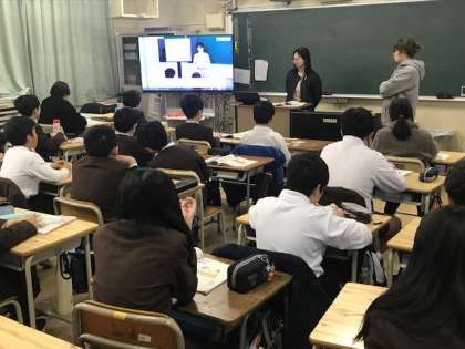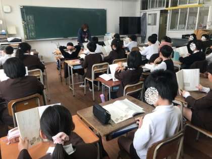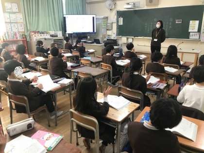 4年生と2年生の国語と5年生の外国語の学習のようすです。