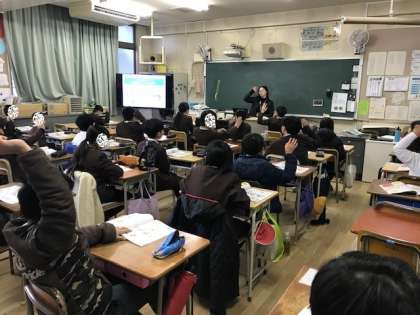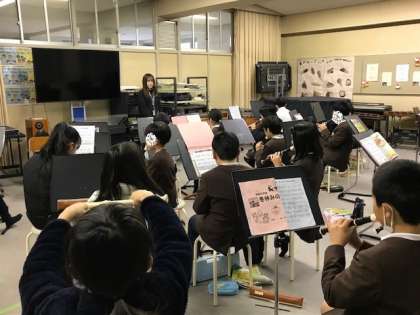 4年生の音楽と3年生の国語と5年生の家庭科の学習のようすです。