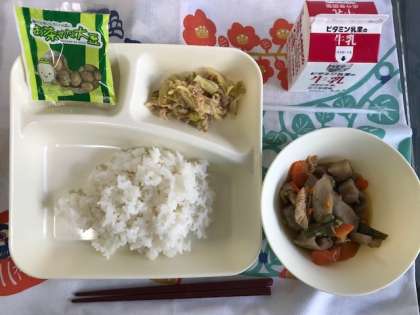 筑前煮、ツナとキャベツのごまいため、まっ茶大豆です。