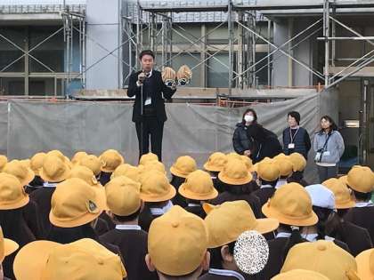 そのあと教頭先生からグローブのお披露目があり、学級ごとにまわっていきます。