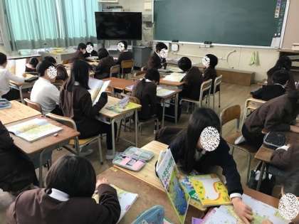 4年生の国語と3年生の社会科と5年生の外国語の学習のようすです。