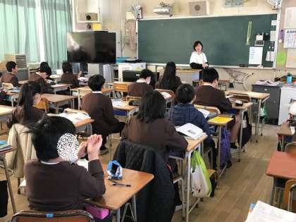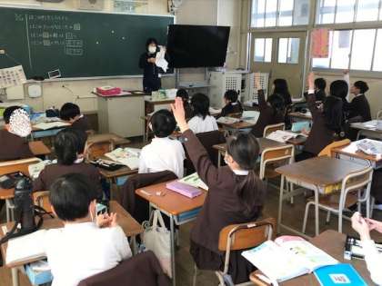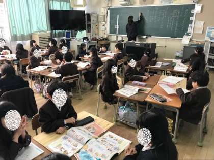 5年生の社会科と2年生の算数と1年生の道徳の学習のようすです。