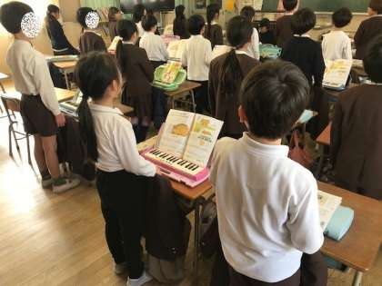 6年生の保健と2年生の音楽と1年生の図工の学習です。