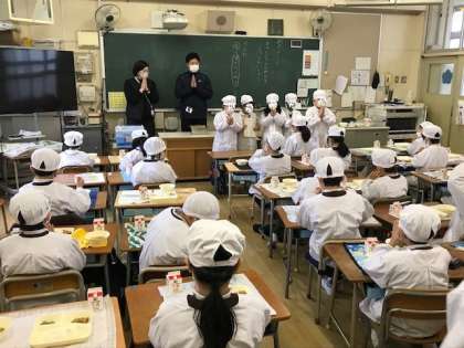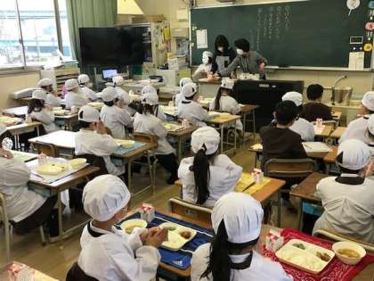 鶏肉のみそバターソース、五目汁、きな粉よもぎだんごです。