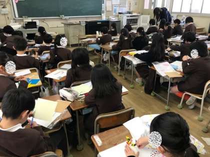 5年生の社会科と2年生の国語と1年生の図工の学習のようすです。