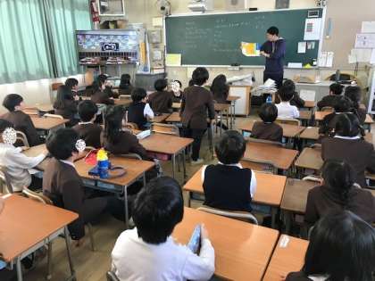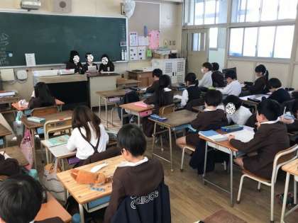 5年生の外国語と2年生の算数と1年生の図工の学習です。