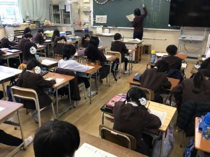 3年生と2年生の国語と5年生の外国語の学習のようすです。