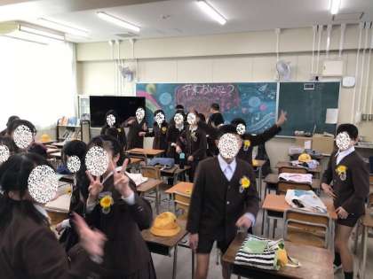 卒業式が始まる前の教室のようすです。