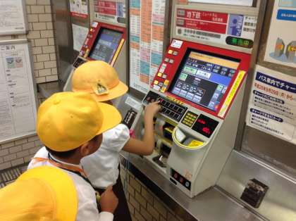 生活科で電車やバスの正しい乗り方を学ぶ学習として、のりものたんけんに行きました。