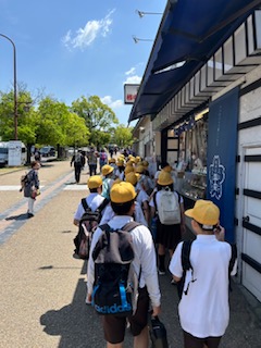 奈良公園駅につきました。電車内はとても混んでいましたが、さすが5年生。マナーをしっかり守ってお互い声をかけていました。