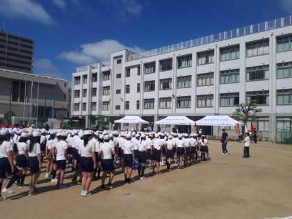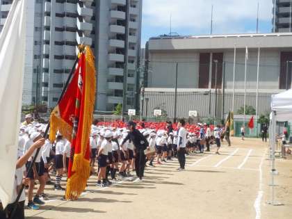 運動会当日、優勝旗を手にするのは、どちらの組でしょうか。楽しみです。