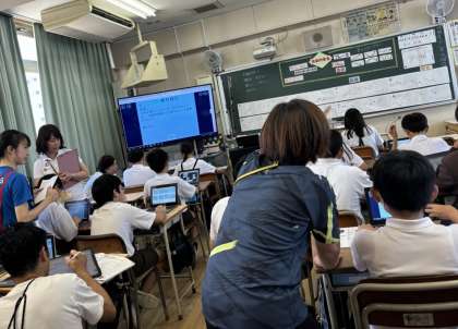 6年生の音楽の授業では、音楽制作アプリを使って「クラスのオリジナルテーマソングを作ろう」の学習をしています。これまでに子どもたちは、それぞれがクラスのイメージに合う曲になるように、音を選んだり、リズムを変えたりしながら、4小節のメロディーを作りました。今日は、友だちの作ったメロディーを聴いて、自分のメロディーとつなげ、16小節の音楽を作りました。次の学習では、さらに素敵な曲になるように、ブラッシュアップしてきます。