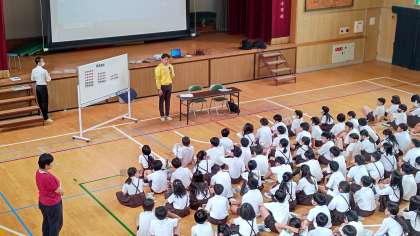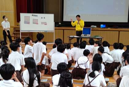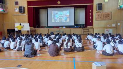 6年生の租税教室の様子です。今日は、西区の納税協会や税務署の方々にお越しいただき、私たちの暮らしを支えている税金について話をしていただきました。税金がなくなったらどうなるのか、映像を見て考えた後、税金の仕組みやその使い道について学びました。最後にジェラルミンケースに入った1億円(もちろんレプリカです。)を見せてもらうと歓声が上がりました。