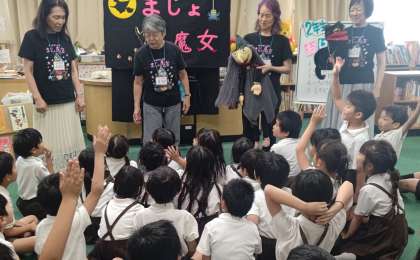 今日は、待ちに待ったまじょまじょお話会です。本日の読み聞かせのメニューは、「なりました」「にわとりのおっぱい」「そうだ村の村長さん」「いちにちおばけ」「しちどぎつね」の5冊です。とっても楽しい時間となりました。