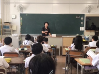環境について考えている4年生は、なぜ、給食の牛乳でストローを使わなくなったのか、栄養教諭の黒野先生に質問をしました。