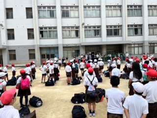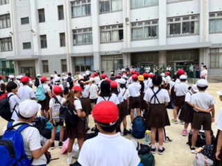 5年生は今日から2泊3日、林間学習に行きます。写真は出発式の様子です。