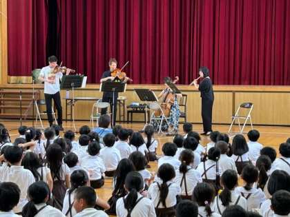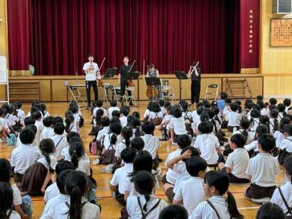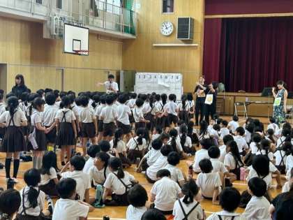 昨日、10月30日に行われる音楽鑑賞会の前準備にあたる、芸術鑑賞ワークショップがありました。オーケストラで使われる楽器の紹介では、子どもたちみんな興味津々な様子で、熱心に説明を聞いていました。知っている楽器や曲があると、歓声があがっていました。