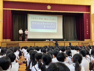 今日は児童朝会で、計画委員会の子ども達から、「創立150周年を盛り上げるために、本田小学校のマスコットキャラクターをつくろう」と呼びかけがありました。