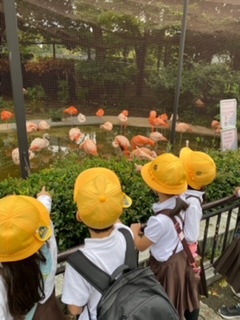水中のカバにピースをしてみたり、クロサイに振り向いてほしいのか「おーい」と呼んでみたり、フラミンゴの足上げの真似をしてみたり、子どもたちの楽しみ方はそれぞれです。