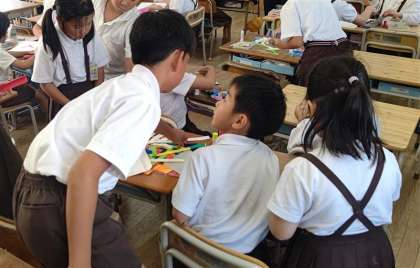 当日の役割分担を決めたり、お店にいるものを準備したり、高学年を中心にそれぞれの班が協力し合って活動していました。11月29日(金)の本番まで、あと3回たてわり班を実施します。今日作った各班のお店のポスターは、玄関にはりますので、来校の際にぜひご覧ください。