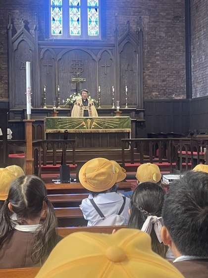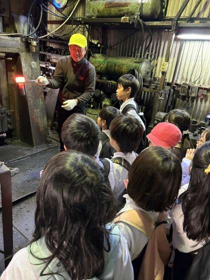 2年生は、生活科の学習でまち探検を行いました。日々、生活している自分たちの町、本田。知っているようで知らない町の様子をグループごとに見に行きました。九島院というお寺や川口教会といった歴史のある建物、地域産業の野島製作所などなかなか入ることができない場所に入らせていただき、お話をうかがいました。