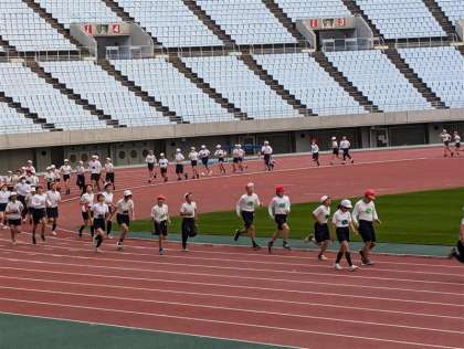昨日、西区の6年生が一堂に会し、ヤンマースタジアム長居で西区スポーツ交歓会が開催されました。世界陸上でも使われる素晴らしい会場で、100m走や400m走、400mリレーを行いました。今年一番の寒さの中でしたが、6年生の子どもたちは、元気にフィールドを駆け抜けました。リレーが始まると、自然とスタンドから「フレー!フレー!本田!」の声が。一所懸命走っている仲間を応援している様子がとても微笑ましかったです。
