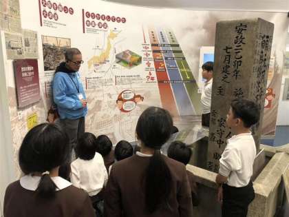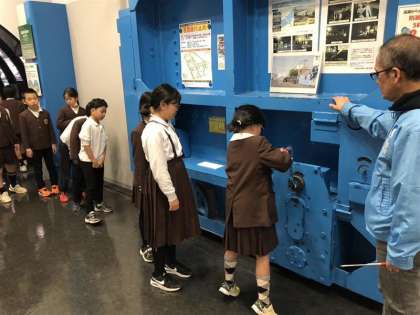 4年生の社会見学の様子です。4年生は、総合的な学習の時間で防災の学習をしています。今回は、津波・高潮ステーションに行ってさらに学びを深めてきました。津波災害体感シアターでは、津波の恐ろしさを体感したり、地震・津波発生時の対応などを学んだりしました。