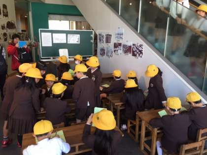 昔の学校の様子を見学しました。机の大きさも、今とは全然違いますね。