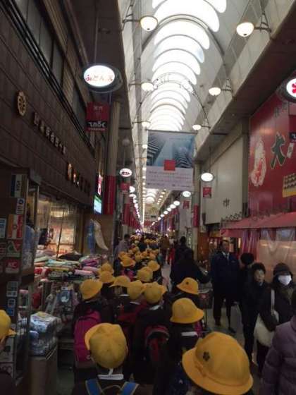 今昔館の見学が終わって、天神橋筋商店街を通って、お弁当を食べる公園に向かいました。