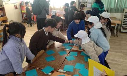 今日の2時間目、園児が本田小学校にやってきました!4クラスに分かれて1年生が考えた遊びで交流会をしました。1年生はホスト役として園児が楽しめるように工夫していました。小学校の様子がわかるカルタや絵あわせ、松ぼっくりを使った手作りけん玉など、おもしろそうな遊びがいっぱい!園児もとても楽しそうでした。4月からは1年生。本田小学校は、みなさんが入学するのを楽しみに待っています!