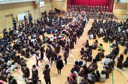 後半は、全員講堂に集合し、6年生から歌のプレゼントをしてもらいました。ちょっぴり緊張気味の6年生でしたが、きれいな歌声とハーモーニーを講堂いっぱいに響かせていました。在校生もステキな歌声に大きな拍手を送りました。最後には、花のアーチを作り、6年生を見送りました。