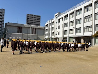 西区役所のにっしーパトロール隊の方が来てくださり、下校時の見守りをしてくださることや、困ったら頼ってくれていいよというお話を聞かせていただきました。