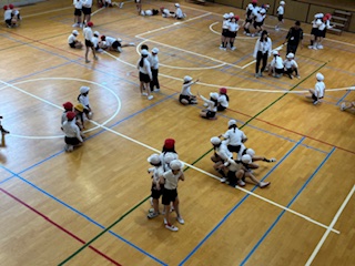 1枚目の写真は4年生の体育です。体つくり運動に取り組んでいました。