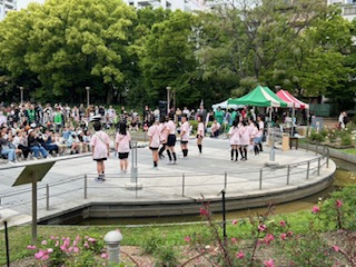 ?本日、靱公園で開催されたバラ園コンサートに、本田小学校の和太鼓クラブとなわとびクラブの児童が出演しました。