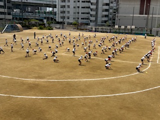 5年生も、綱引きの場所を確認したり、ソーラン節の場所移動を確認したりしていました。