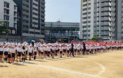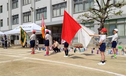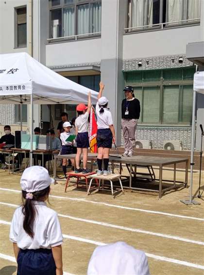 今日は、全校で開会式の練習をしました。座席の確認をした後、初めて紅白に分かれて運動場に並びました。朝からとても暑かったですが、5・6年生児童が中心になって効率よく練習することができました。