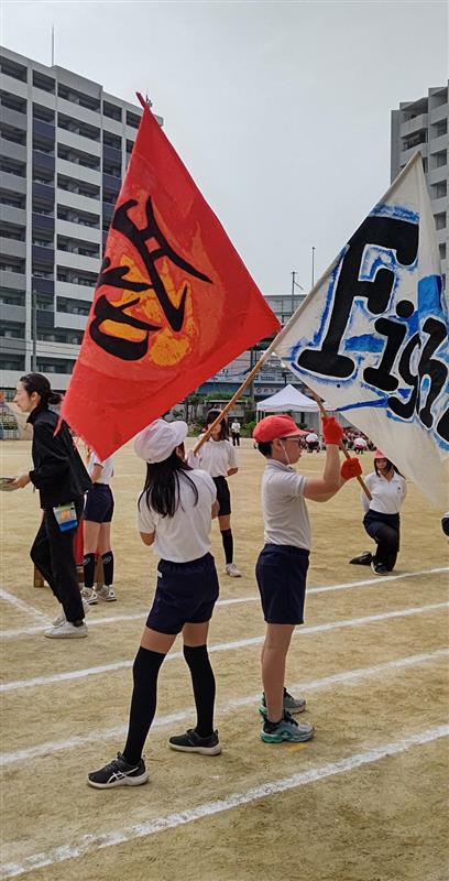 応援合戦の様子です。5・6年生の応援団を中心にみんなで掛け声やウェーブの練習をしました。元気いっぱい応援して、運動会をさらに盛り上げていきましょう!