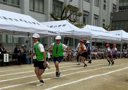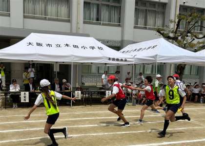 2日間の運動会を締めくくる、6年生のリレーです。走り方もバトンリレーも見応えがありました。何位であろうと最後まで全力で走り切る姿が、本田小学校の最高学年として、とても頼もしかったです。大感動の運動会でした。