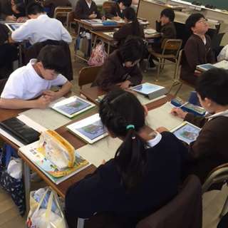 タブレットを使って、沖縄の家の特徴をマーキングし、まとめました。