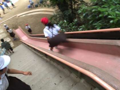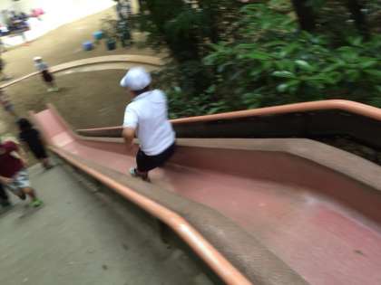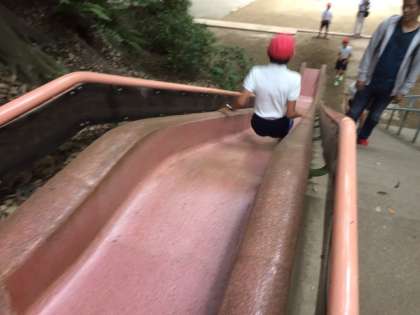 滑り台、こんなにも体が浮くんです。