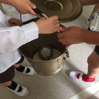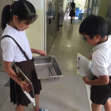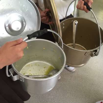 食缶を返却する時に、給食員会のメンバーが、