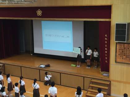 児童集会で、図書委員会からの