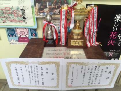 現在、賞状と優勝カップを